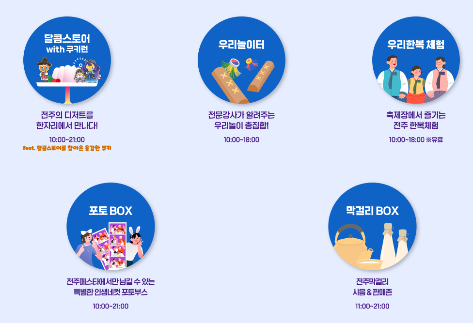 | 10:00~21:00 | 포토BOX | 전주페스타에서만 남길 수 있는 특별한 인생네컷 포토부스 |